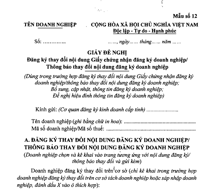 - Thông Báo Thay Đổi Nội Dung Đăng Ký Doanh Nghiệp: Văn bản này cần ghi rõ ngành nghề dự kiến bổ sung. Nó phải được ký bởi người đại diện pháp luật của công ty.