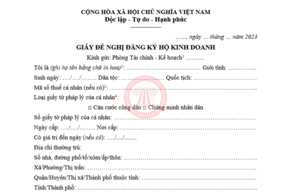 Giấy Đề Nghị Đăng Ký Hộ Kinh Doanh