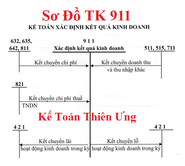 Đầu kỳ, Tài khoản 911 không có số dư. Cuối kỳ, tất cả các tài khoản doanh thu (loại 5, 7) và chi phí (loại 6, 8) sẽ được kết chuyển sang Tài khoản 911. Số dư cuối cùng của Tài khoản 911 sau khi trừ đi Chi phí Thuế Thu nhập Doanh nghiệp sẽ chính là Lợi nhuận hoặc Lỗ ròng trong kỳ, được kết chuyển sang Tài khoản 421 (Lợi nhuận sau thuế chưa phân phối).