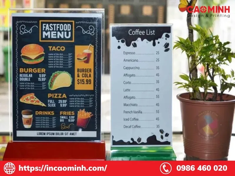 Thiết kế menu cafe ấn tượng và dễ đọc