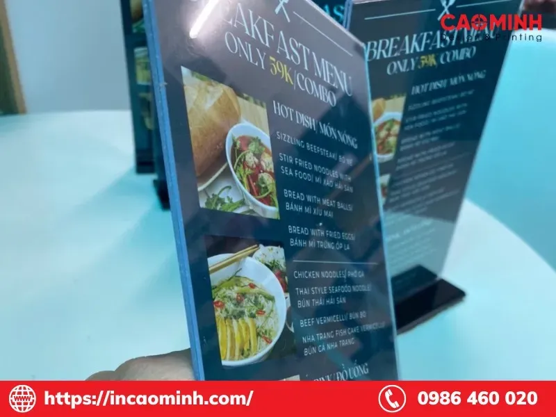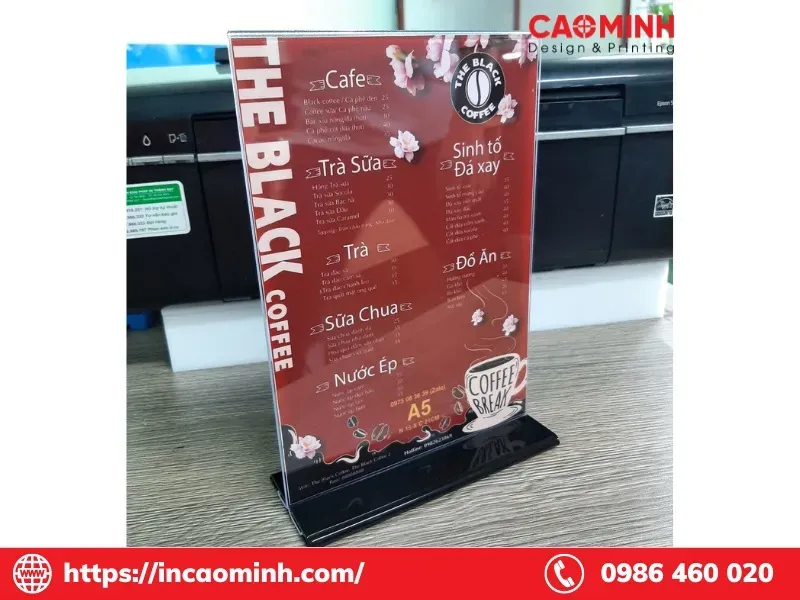 Các mẫu menu cafe trưng bày trên bàn chuyên nghiệp