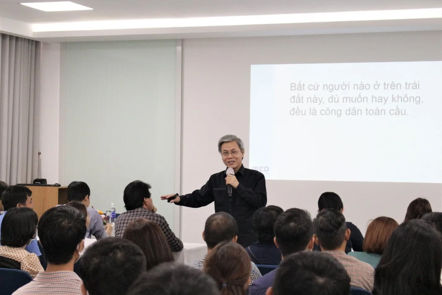 Tiến sĩ Giản Tư Trung tại một buổi chia sẻ về doanh trí và sự học