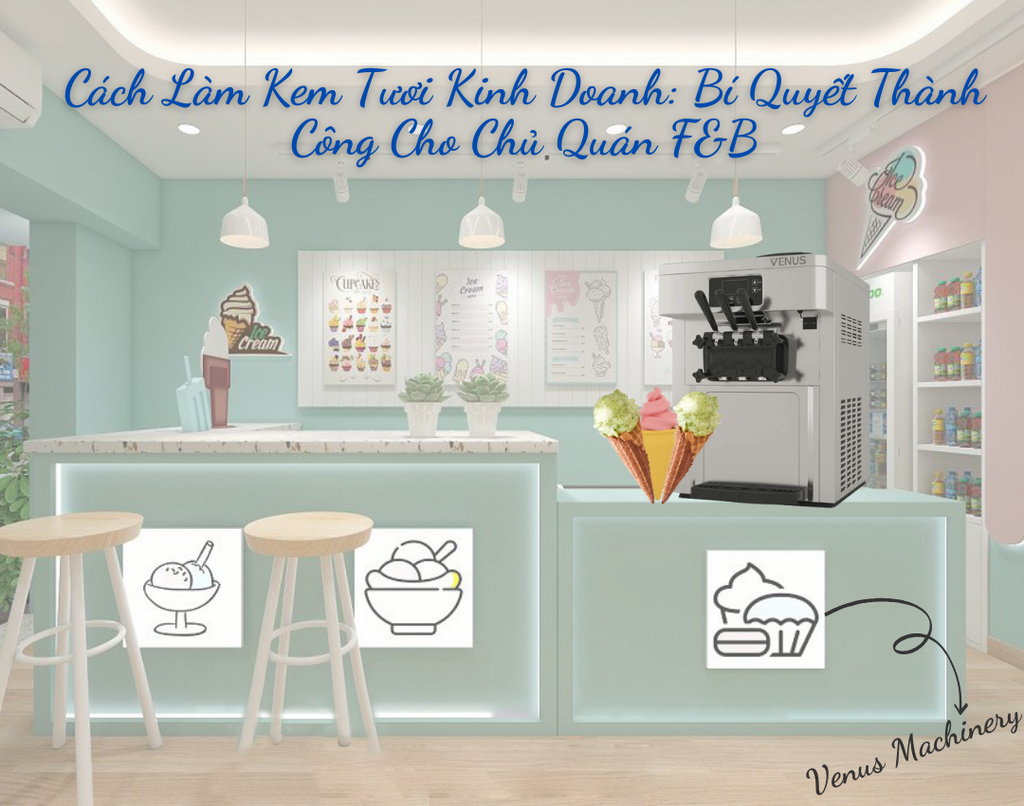 Máy làm kem tươi là khoản đầu tư lớn nhất. Giá cả của máy phụ thuộc vào công suất, thương hiệu, và công nghệ. Ngoài máy làm kem, bạn cần mua tủ đông, quầy pha chế, dụng cụ phục vụ. Đảm bảo chất lượng máy móc sẽ giúp duy trì hoạt động kinh doanh ổn định.