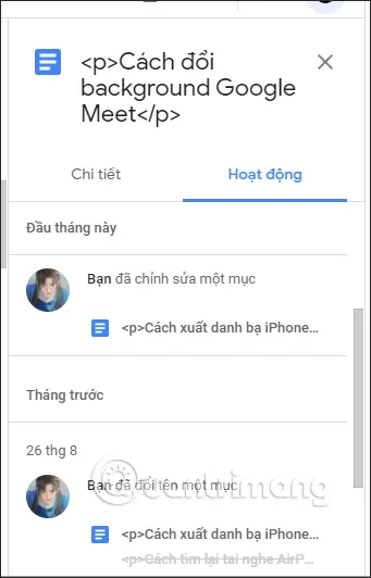 Kiểm tra lịch sử hoạt động và các lần chỉnh sửa của tệp trên Google Drive