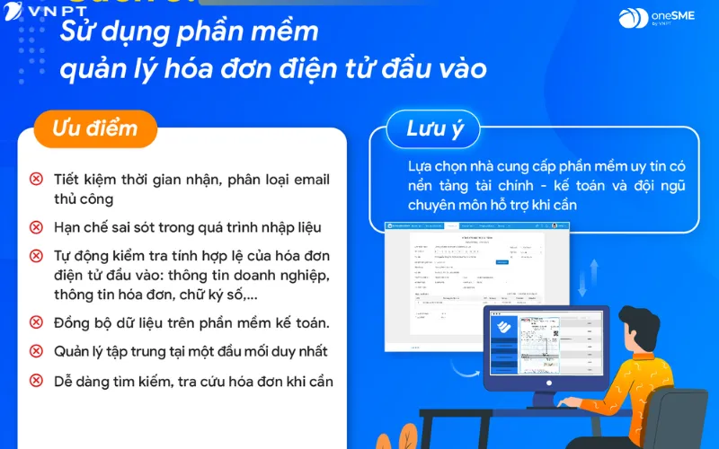 Đây là phương pháp tối ưu và được khuyến nghị cho mọi doanh nghiệp muốn cách quản lý hóa đơn điện tử một cách chuyên nghiệp. Phần mềm quản lý HĐĐT cho phép tự động hóa toàn bộ quy trình từ tiếp nhận đến hạch toán. Kế toán không cần thao tác thủ công, tiết kiệm thời gian đáng kể cho các công việc có tính phân tích cao hơn.