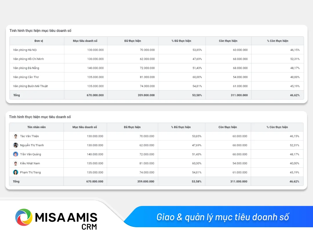 Giao diện hệ thống hiển thị mục tiêu doanh số và KPI chi tiết
