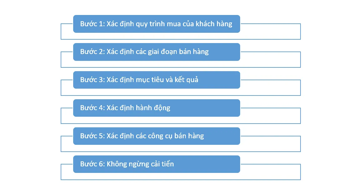 Mặc dù quy trình bán hàng có thể khác nhau tùy thuộc vào mô hình kinh doanh (B2B hay B2C), một khuôn khổ chung thường bao gồm các bước sau: