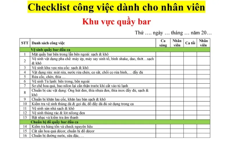Một bộ SOPs hoàn chỉnh phải bao gồm mô tả công việc chi tiết cho từng vị trí, từ bảo vệ, phục vụ, pha chế đến thu ngân. Bạn cần quy định rõ ràng thời gian làm việc, mô tả cụ thể nhiệm vụ, và các tiêu chí đánh giá kết quả công việc cụ thể. Việc này giúp nhân viên nắm rõ trách nhiệm, đồng thời cung cấp cơ sở để chủ quán đánh giá hiệu quả từ xa.