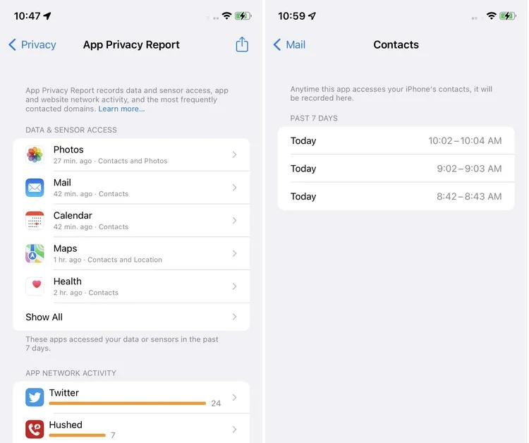 Thông qua báo cáo này, bạn có thể nhanh chóng phát hiện các ứng dụng đáng ngờ. Ví dụ, một ứng dụng chỉnh sửa ảnh liên tục truy cập vào vị trí của bạn ngay cả khi không sử dụng. Đây là tín hiệu cho thấy bạn cần xem xét lại quyền truy cập của ứng dụng đó.