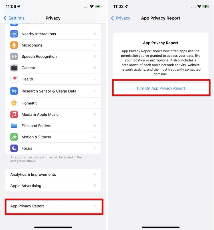 Apple đã giới thiệu tính năng Báo cáo Quyền riêng tư (App Privacy Report) từ iOS 15.2. Công cụ này cung cấp cái nhìn chi tiết về cách các ứng dụng sử dụng những quyền đã được cấp. Người dùng có thể theo dõi tần suất và thời điểm ứng dụng truy cập vào Dữ liệu, Cảm biến, và hoạt động mạng.