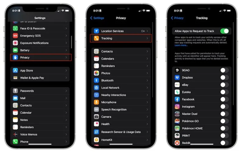 Bạn có thể quản lý ATT bằng cách vào Cài đặt, chọn Quyền riêng tư & Bảo mật, sau đó chọn Theo dõi (Tracking). Nếu bạn tắt tùy chọn “Cho phép Ứng dụng Yêu cầu Theo dõi” (Allow Apps to Request to Track), tất cả ứng dụng sẽ tự động bị từ chối quyền theo dõi.