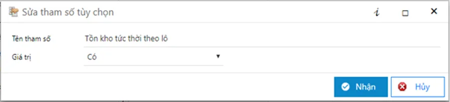 Cài đặt tham số tùy chọn Tồn kho để cấu hình hiển thị Tồn kho theo lô trên màn hình nhập liệu