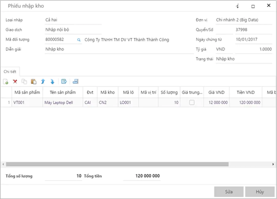 Mã đối tượng: Mã khách hàng hoặc nhà cung cấp liên quan đến phiếu nhập. Nó dùng để theo dõi công nợ. Thông tin này cũng có thể dùng theo dõi đối tượng nội bộ.