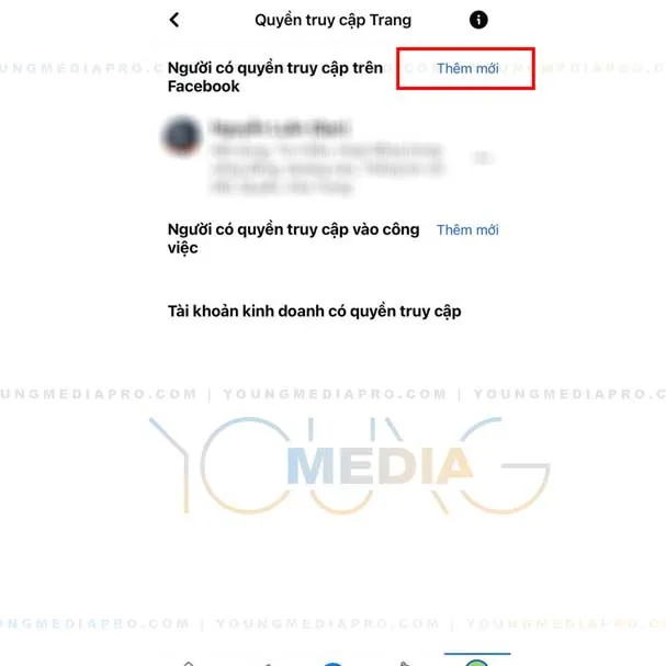 Tại giao diện Quyền truy cập Trang, bạn tìm và nhấp vào nút THÊM MỚI (Add New). Đây là thao tác khởi tạo quá trình mời một người mới tham gia quản lý Trang. Bạn phải xác định rõ loại quyền truy cập bạn muốn cấp. “Người có quyền truy cập trên Facebook” cho phép quản lý toàn diện.