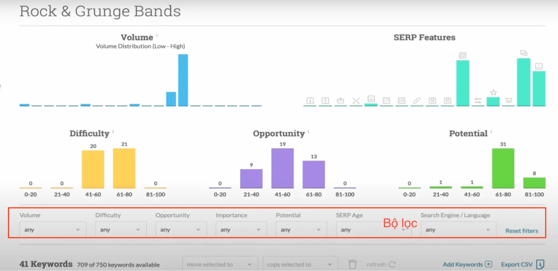 Sử dụng bộ lọc từ khóa để lựa chọn từ khóa phù hợp, tối ưu cho sản phẩm khi kinh doanh trên Amazon.