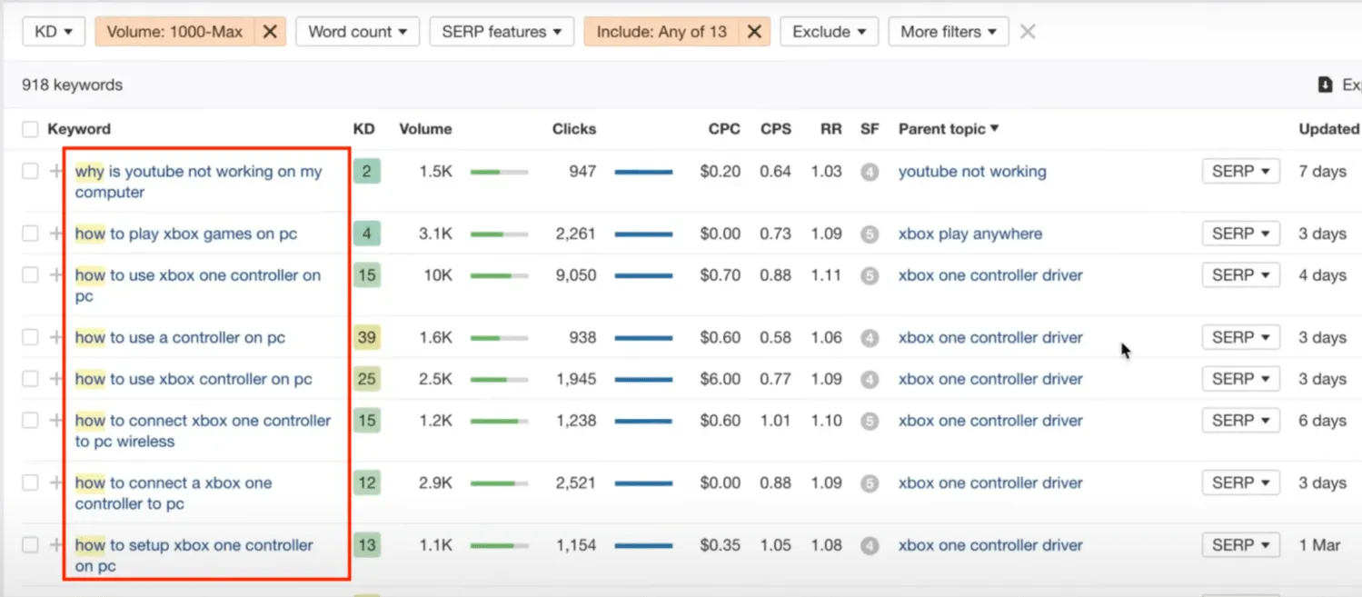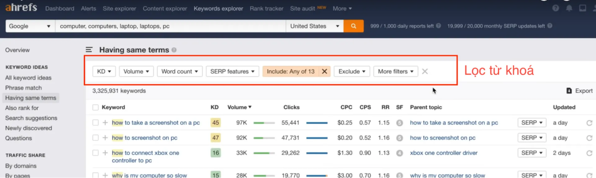 Bộ lọc từ khóa cực thông minh của Ahref, giúp tinh chỉnh danh sách từ khóa cho chiến dịch marketing trên Amazon.