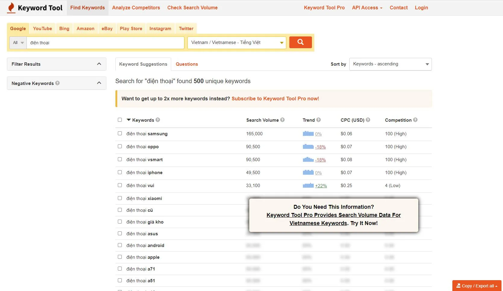 - Keywordtool.io: Phân Tích Từ Khóa và Độ Cạnh Tranh
