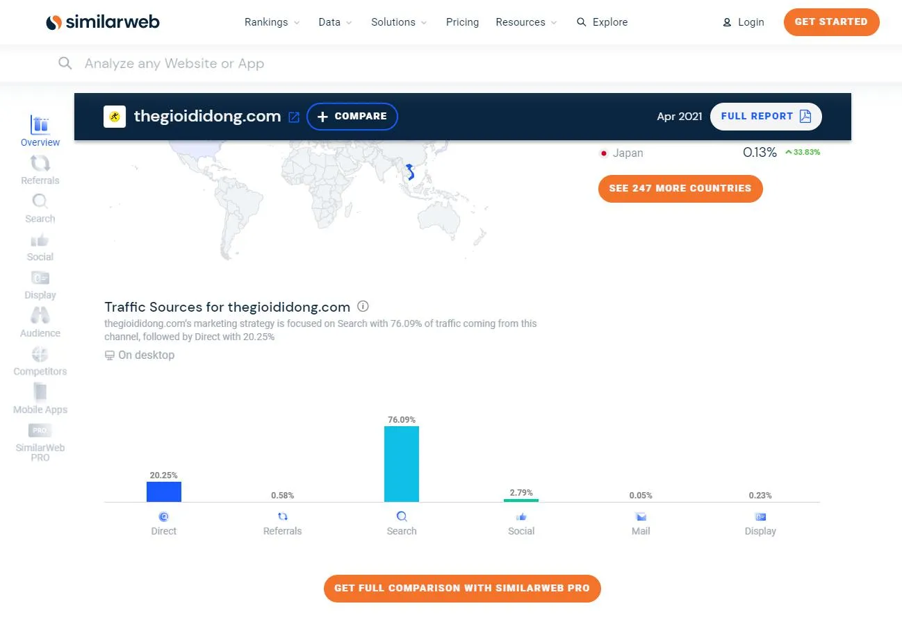 Phân tích các nguồn này sẽ cho bạn cái nhìn rõ ràng về cách đối thủ thu hút khách hàng. Ví dụ, nếu “Search” là nguồn chính, bạn cần tập trung vào SEO. Nếu “Social” cao, bạn nên đẩy mạnh marketing trên mạng xã hội. Dữ liệu này giúp bạn xây dựng chiến lược kinh doanh và chiến lược marketing hiệu quả hơn.