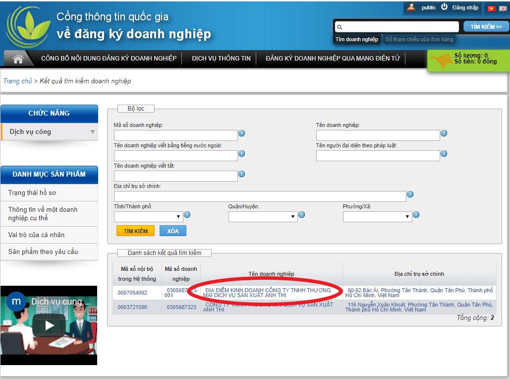 Tra Cứu Địa Điểm Kinh Doanh Thông Qua Cổng Thông Tin Quốc Gia Về Đăng Ký Doanh Nghiệp