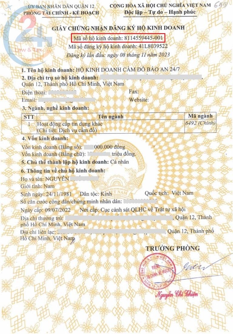 Giấy chứng nhận đăng ký hộ kinh doanh là văn bản pháp lý quan trọng nhất, xác nhận sự tồn tại và các thông tin cơ bản của hộ kinh doanh. Mã số thuế luôn được in rõ ràng trên tài liệu này, thường nằm gần các thông tin về tên và địa chỉ. Đây là nguồn thông tin chính thức, có giá trị pháp lý cao nhất. Chủ hộ cần giữ Giấy chứng nhận này cẩn thận và sao lưu khi cần thiết để tiện cho việc tra cứu và đối chiếu.