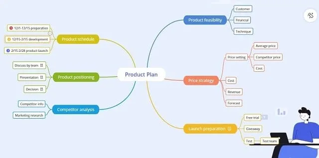 Trong lập kế hoạch kinh doanh, sơ đồ tư duy giúp xác định mục tiêu. Bạn có thể phân tích thị trường một cách trực quan. Nó hỗ trợ lập kế hoạch sản xuất, marketing. Bằng cách sử dụng sơ đồ, các yếu tố được trình bày mạch lạc.