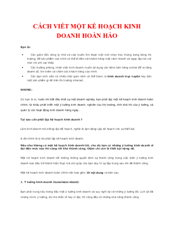 - Các Lưu Ý Quan Trọng Để Kế Hoạch Kinh Doanh Ấn Tượng