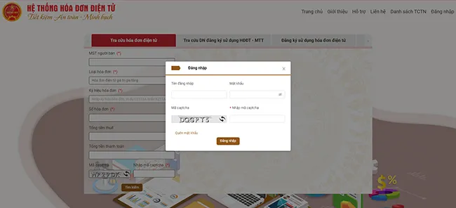 Giao diện đăng nhập hệ thống hóa đơn điện tử của Cơ quan Thuế để lập hóa đơn lẻ